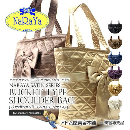 【正規販売店!あす楽!】NaRaYa ナラヤ リボンバッグ バケツ型 ショルダーバッグ(ラージサイズ)<NaRaYa直輸入!>【タイ バッグ ハンドバッグ トートバッグ マザーバッグ キルティング 旅行用 母の日 サテン サテンシリーズ NBS-200/L NBS-200L NBS200L】